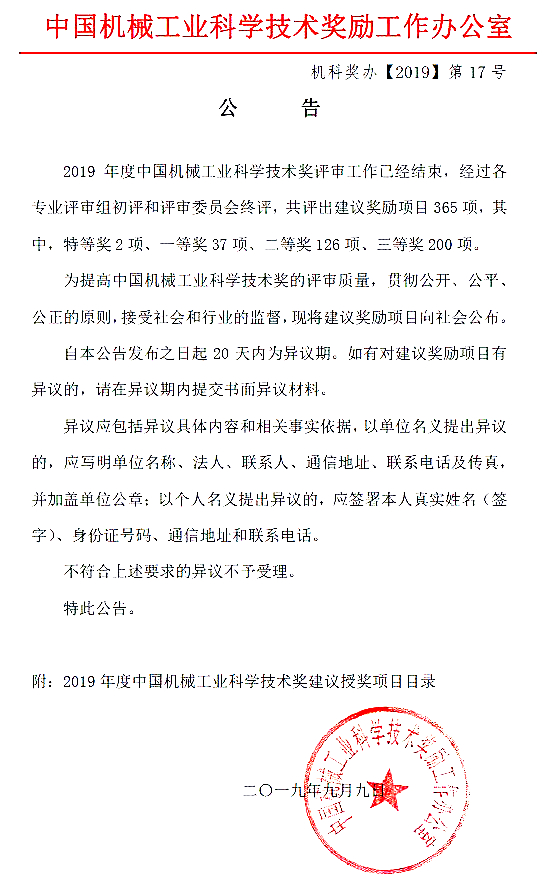 丰收的九月,江苏贝尔机械喜获2019年度中国机械工业科学技术奖。http://www.cmiao.com.cn/cms/news/749.htm