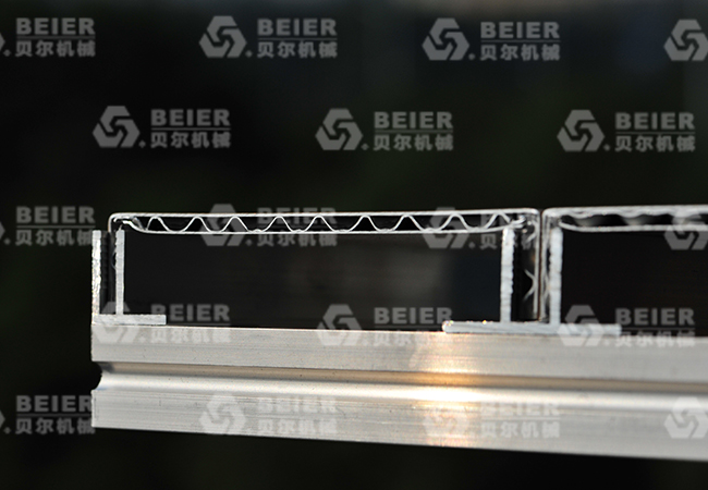 公司结合德国及韩国生产线特点开发的新一代铝塑复合板生产线。通过对复合部份的改进,这样可以使铝卷、高分子膜和PE在复合时一次成型并且效果更佳。此新型设备与老型号相比不仅可以大大节约能源而且操作更为简便,合格率更高,应用广泛,维护方便。此设备生产B1防火板更为合适。同时我们也给该设备配备了机械手,大大节约了客户的生产成本,方便操作。
